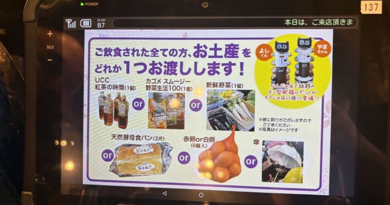 アイスコーヒー1杯でも豪華なモーニングがついてきて、さらにネコ型ロボットが配膳、お土産コーナーには卵やパン、カップ麺に野菜まで…!マツコの番組でも紹介された話題沸騰中のオモウマい店(笑)カフェです。