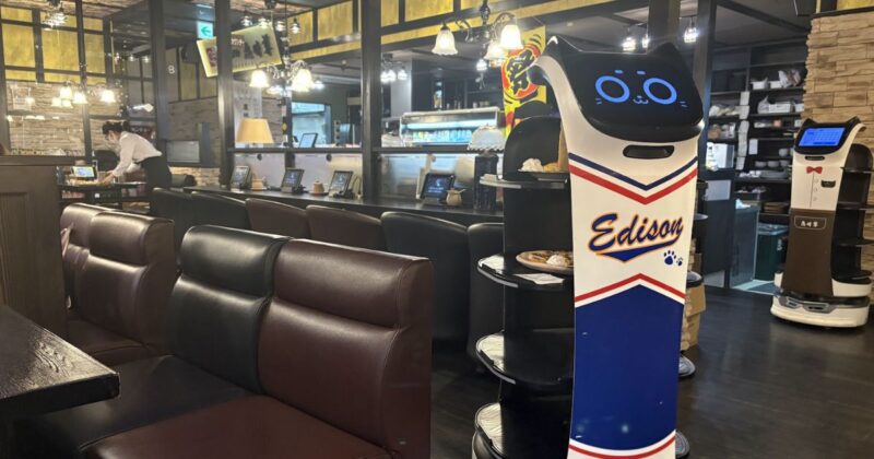 ネコロボが配膳してくれる近未来的なカフェで、