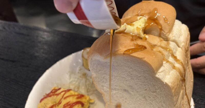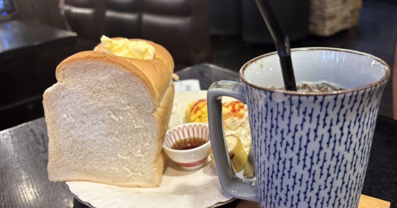 ふわふわに焼かれた厚切りトーストは、表面はカリッと香ばしく、中はとろっと優しい食感。